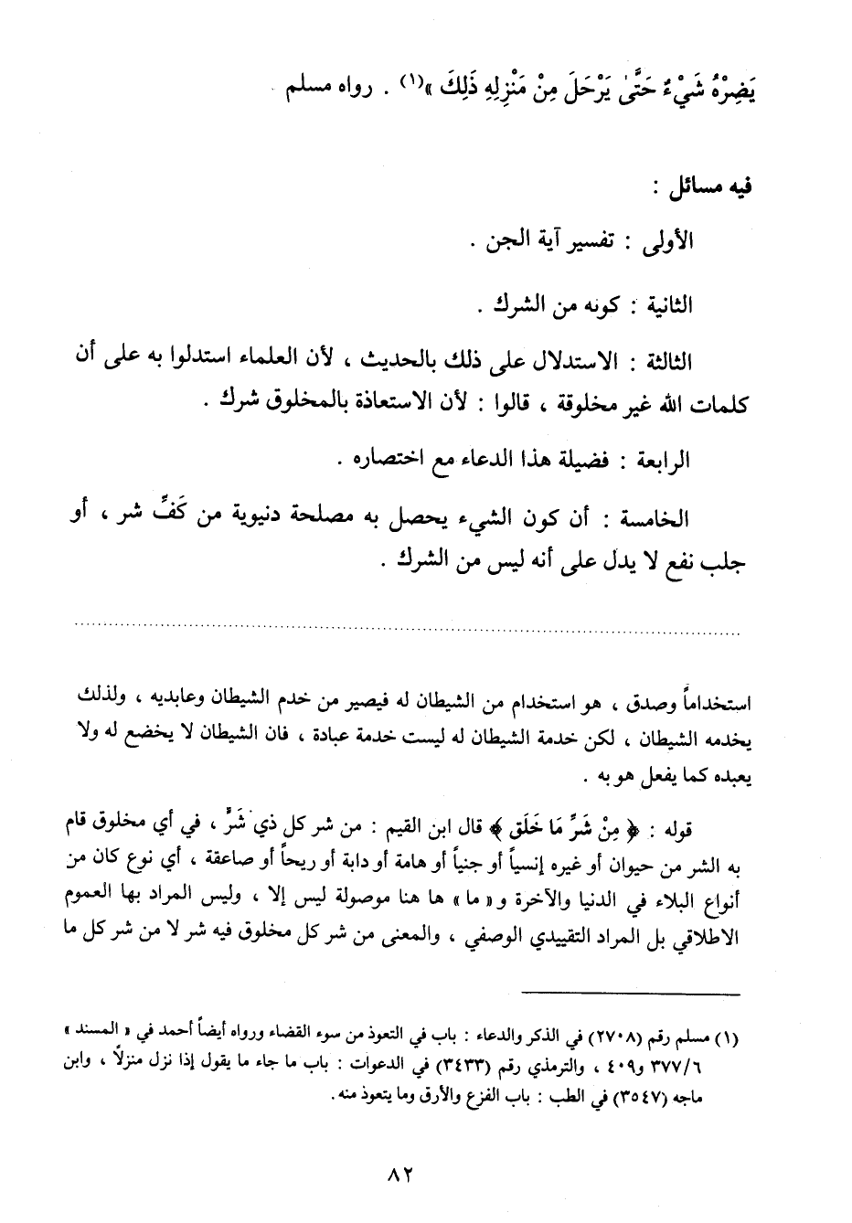 1 مسلم رقم (2708) في الذكر والدعاء: باب في التعوذ من سوء القضاء، ورواه أيضا أحمد في " المسند " 6/ 377 و 409 , والترمذي رقم (3433) في الدعوات: باب ما جاء ما يقول إذا نزل منزلا , وابن ماجه (3547) في الطب: باب الفزع والأرق وما يتعوذ منه.