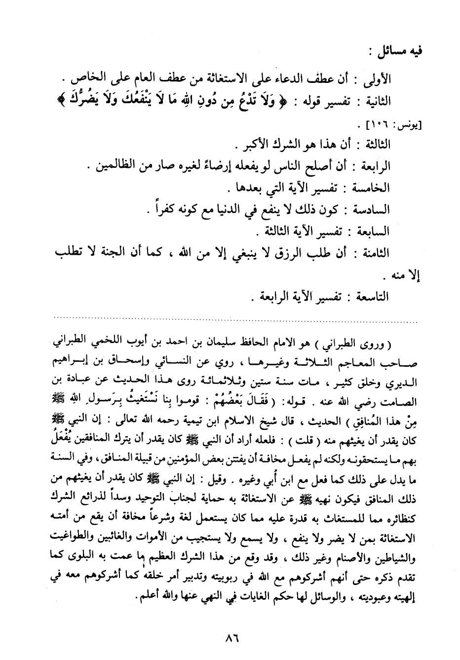 الثانية: تفسير قوله: {وَلا تَدْعُ مِنْ دُونِ اللَّهِ مَا لا يَنْفَعُكَ وَلا يَضُرُّكَ} 1.