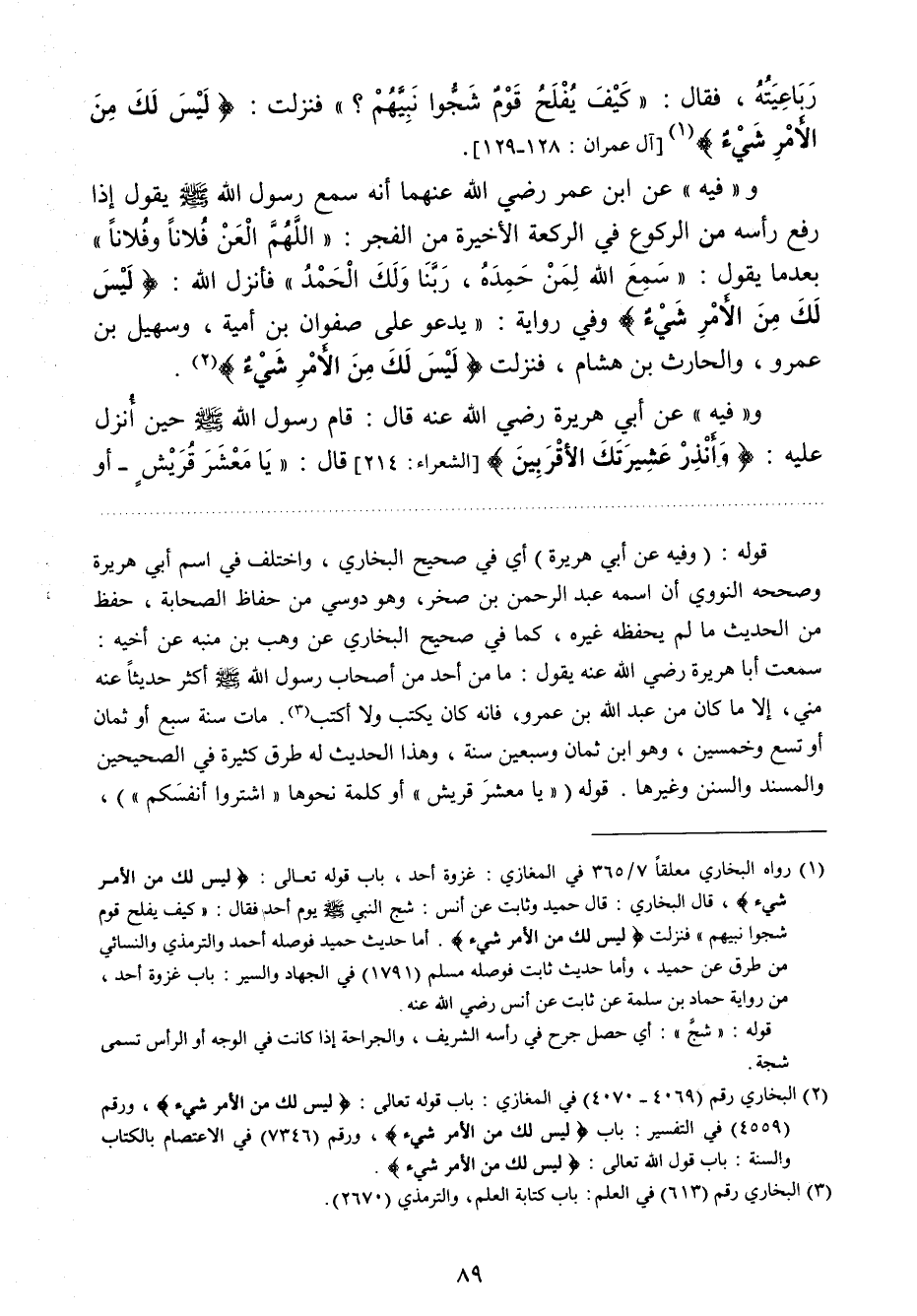 5 البخاري رقم (4069- 4070) في المغازي: باب قوله تعالى: (ليس لك من الأمر شيء) , ورقم (4559) في التفسير: باب (ليس لك من الأمر شيء) , ورقم (7346) في الاعتصام بالكتاب والسنة: باب قول الله تعالى: (ليس لك من الأمر شيء) .