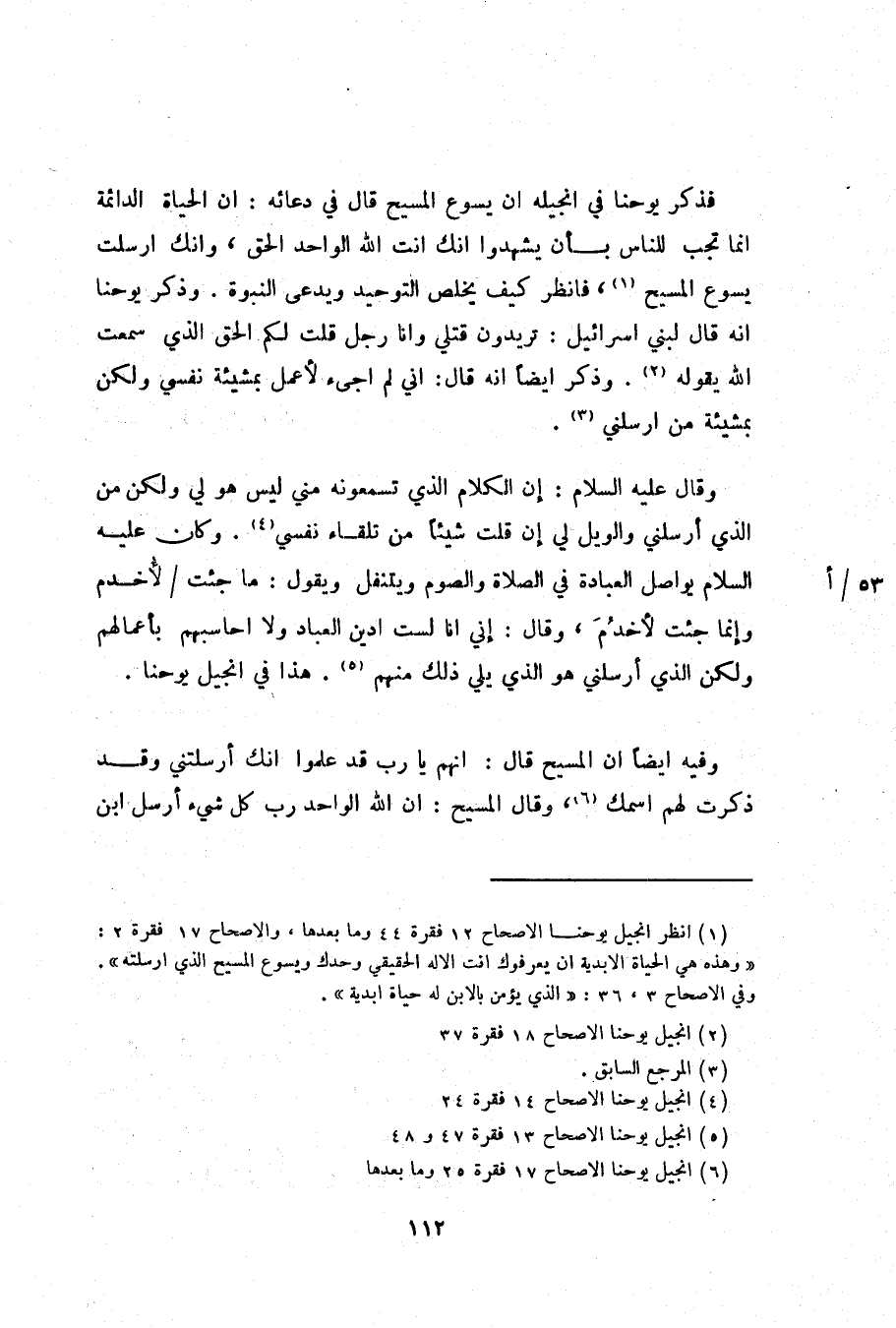 (1) انظر انجيل يوحنا الاصحاح 12 فقرة 44 وما بعدها، والاصحاح 17 فقرة 2: «وهذه هي الحياة الابدية ان يعرفوك انت الاله الحقيقي وحدك ويسوع المسيح الذي ارسلته» . وفي الاصحاح 3، 36: «الذي يؤمن بالابن له حياة ابدية» .
