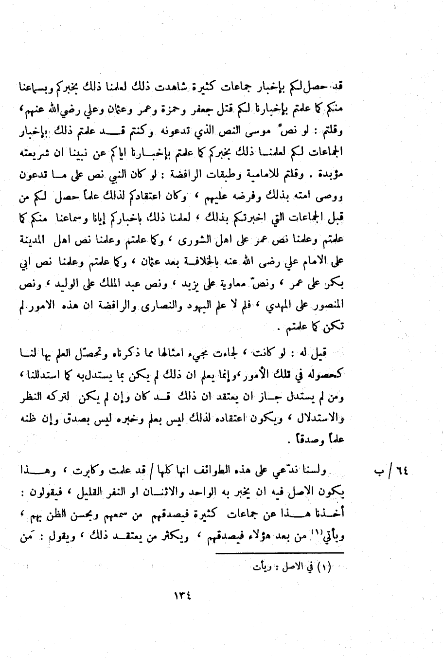 ولسنا ندّعي على هذه الطوائف انها كلها/ قد علمت وكابرت، وهذا يكون الاصل فيه ان يخبر به الواحد والاثنان او النفر القليل، فيقولون: