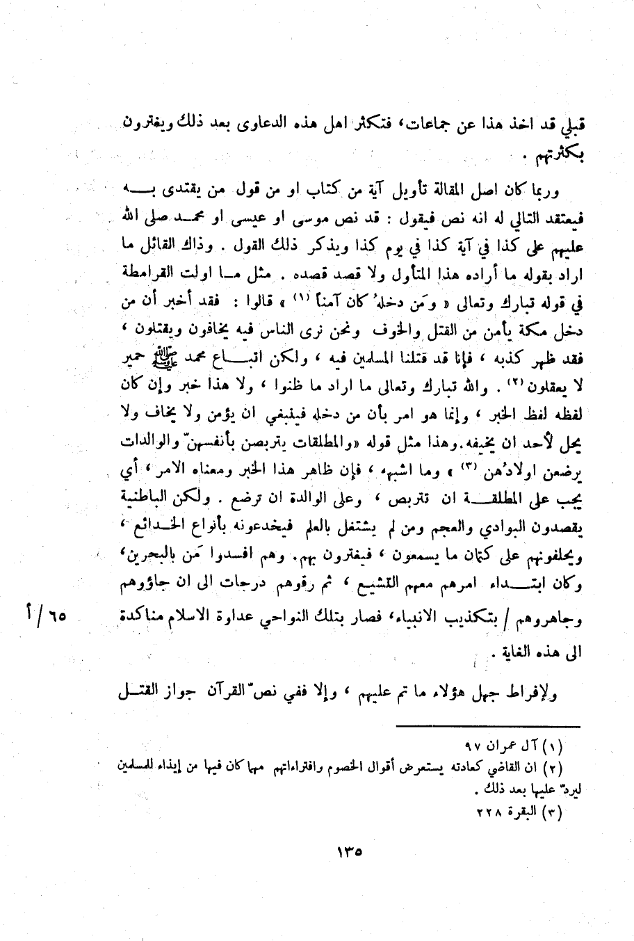 (2) ان القاضي كعادته يستعرض أقوال الخصوم وافتراآتهم مهما كان فيها من إيذاء للمسلمين ليردّ عليها بعد ذلك.