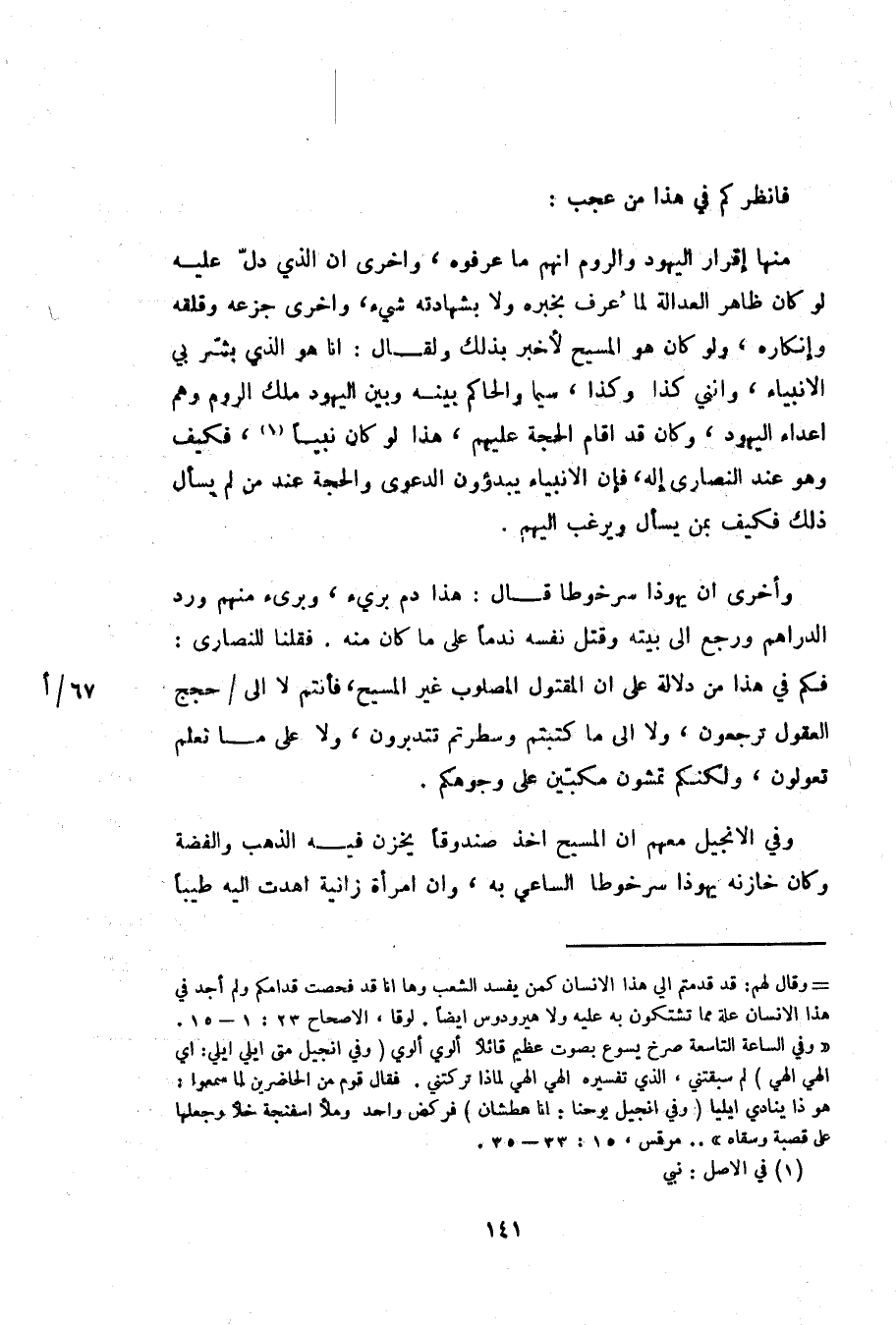 فكم في هذا من دلالة على ان المقتول المصلوب غير المسيح، فأنتم لا الى/ حجج العقول ترجعون، ولا الى ما كتبتم وسطرتم تتدبرون، ولا على ما نعلم تعولون، ولكنكم تمشون مكبّين على وجوهكم.