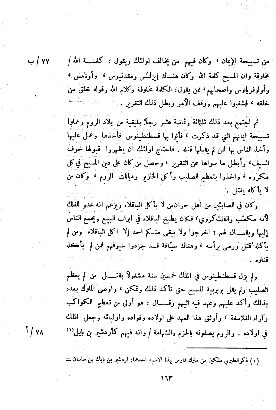 من تسبيحة الإيمان، وكان فيهم من يخالف اولئك ويقول: كلمة الله/ مخلوقة وان المسيح كلمة الله وكان هناك إيرلس ومقدنيوس، وأونامس، وأولو فريانوس واصحابهم، ممن يقول: الكلمة مخلوقة وكلام الله وقوله خلق من خلقه، فشغبوا عليهم ووقف الأمر وبطل ذلك التقرير.