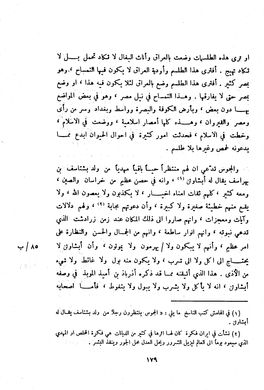 (1) في الهامش كتب الناسخ ما يلي: «المجوس ينتظرون رجلا من ولد بشتاسف يقال له أبشاوثن.