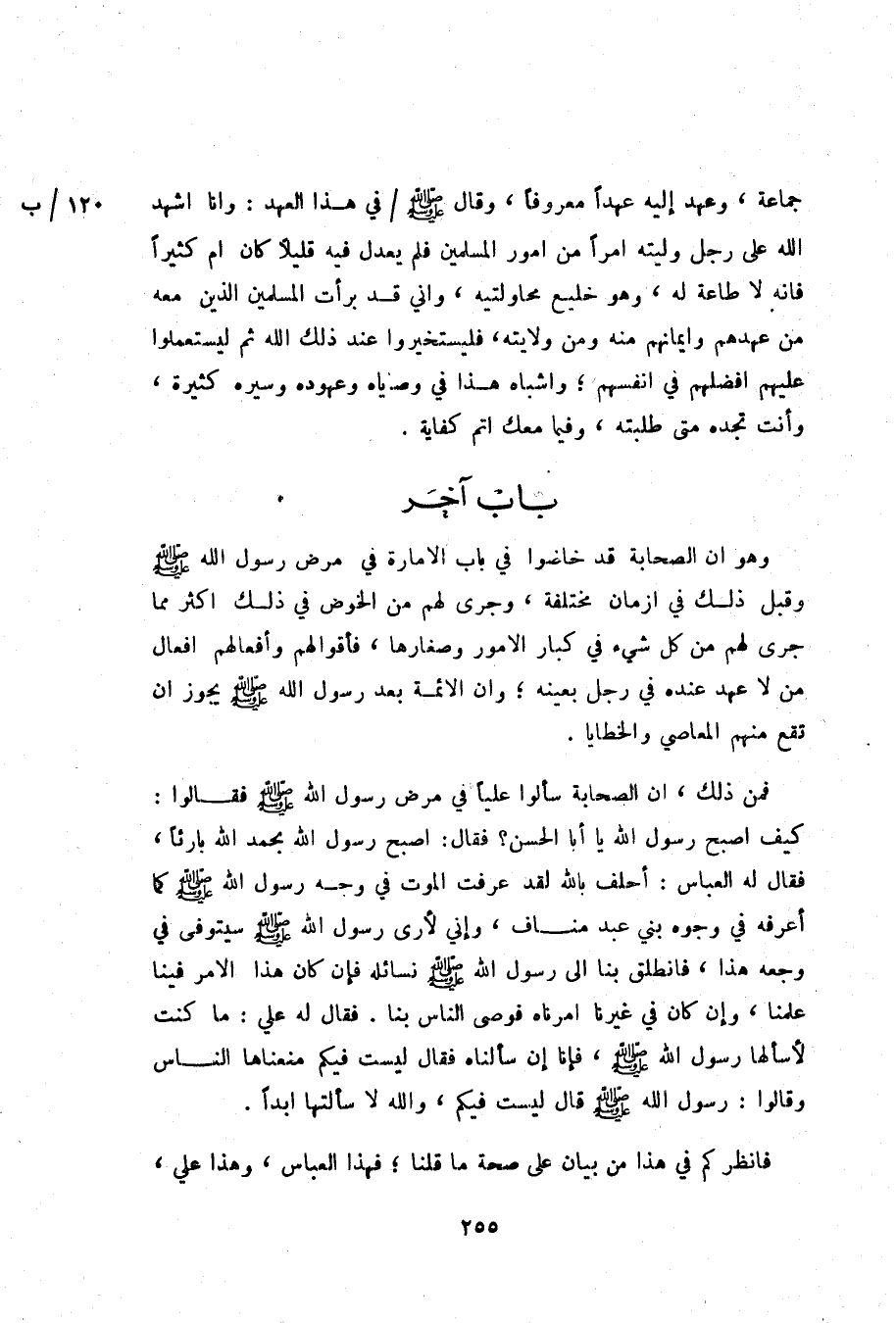 باب آخر [كيف خاض الصحابة في امر الامارة ولم يذكروا انه نص على أحد بعينه]