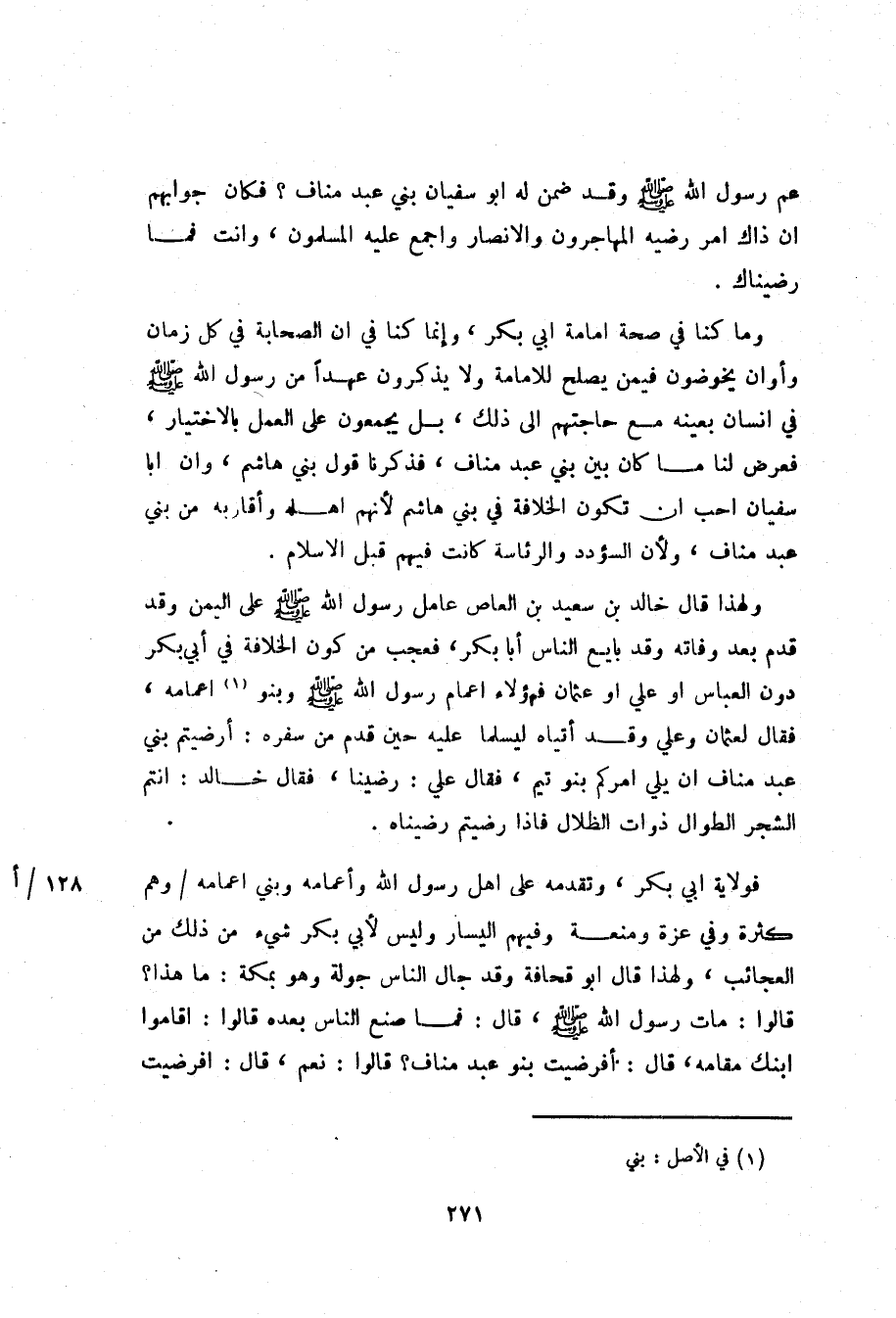 عم رسول الله صلّى الله عليه وسلم وقد ضمن له ابو سفيان بني عبد مناف؟ فكان جوابهم ان ذاك امر رضيه المهاجرون والانصار واجمع عليه المسلمون، وانت فما رضيناك.