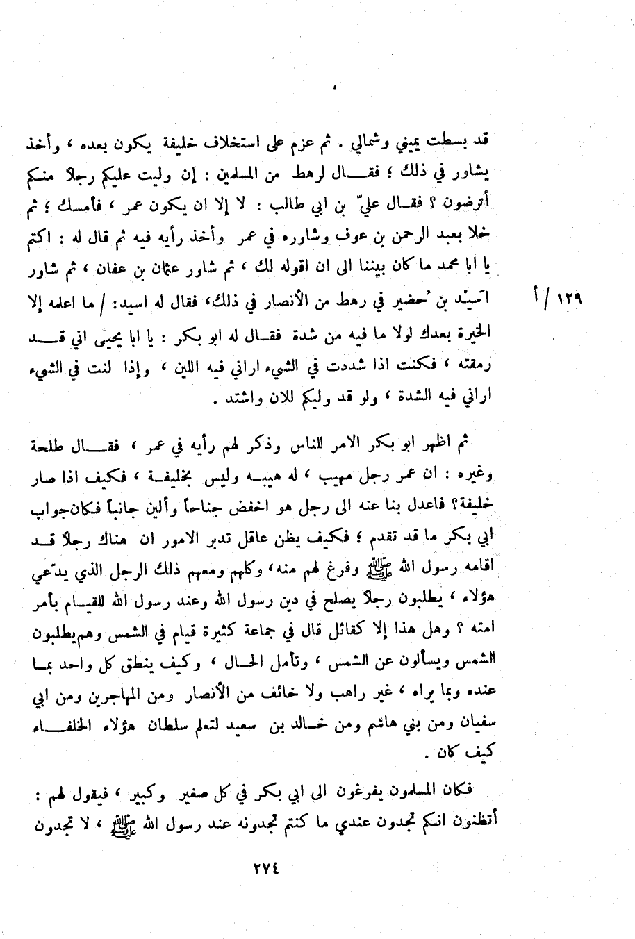 ثم اظهر ابو بكر الامر للناس وذكر لهم رأيه في عمر، فقال طلحة وغيره: ان عمر رجل مهيب، له هيبه وليس بخليفة، فكيف اذا صار خليفة؟ فاعدل بنا عنه الى رجل هو اخفض جناحا وألين جانبا فكان جواب ابي بكر ما قد تقدم؛ فكيف يظن عاقل تدبر الامور ان هناك رجلا قد اقامه رسول الله صلّى الله عليه وسلم وفرغ لهم منه، وكلهم ومعهم ذلك الرجل الذي يدّعي هؤلاء، يطلبون رجلا يصلح في دين رسول الله وعند رسول الله للقيام بأمر امته؟ وهل هذا إلا كقائل قال في جماعة كثيرة قيام في الشمس وهم يطلبون الشمس ويسألون عن الشمس، وتأمل الحال، وكيف ينطق كل واحد بما عنده وبما يراه، غير راهب ولا خائف من الأنصار ومن المهاجرين ومن ابي سفيان ومن بني هاشم ومن خالد بن سعيد لتعلم سلطان هؤلاء الخلفاء كيف كان.