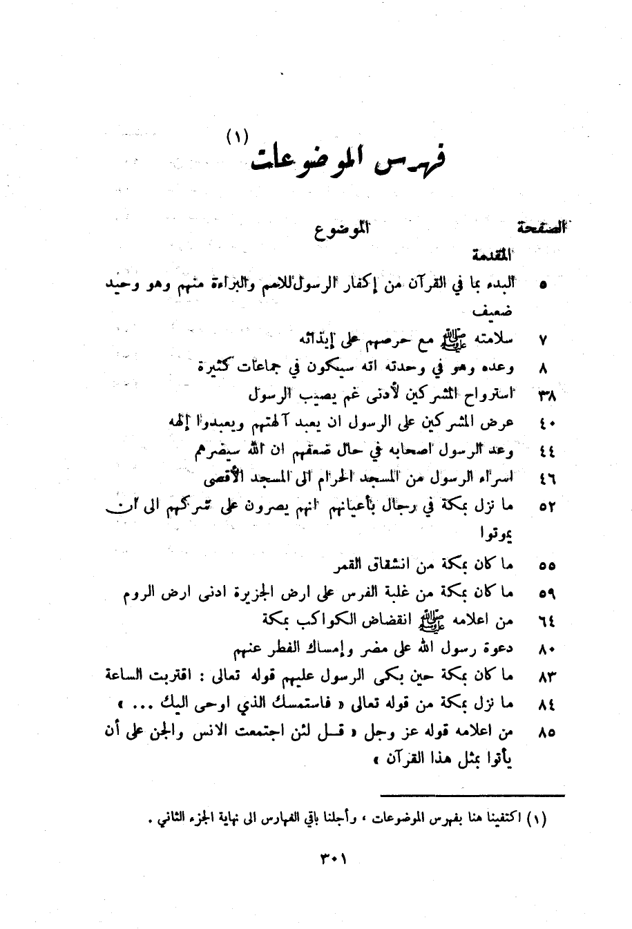 (1) اكتفينا هنا بفهرس الموضوعات، وأجلنا باقي الفهارس الى نهاية الجزء الثاني.