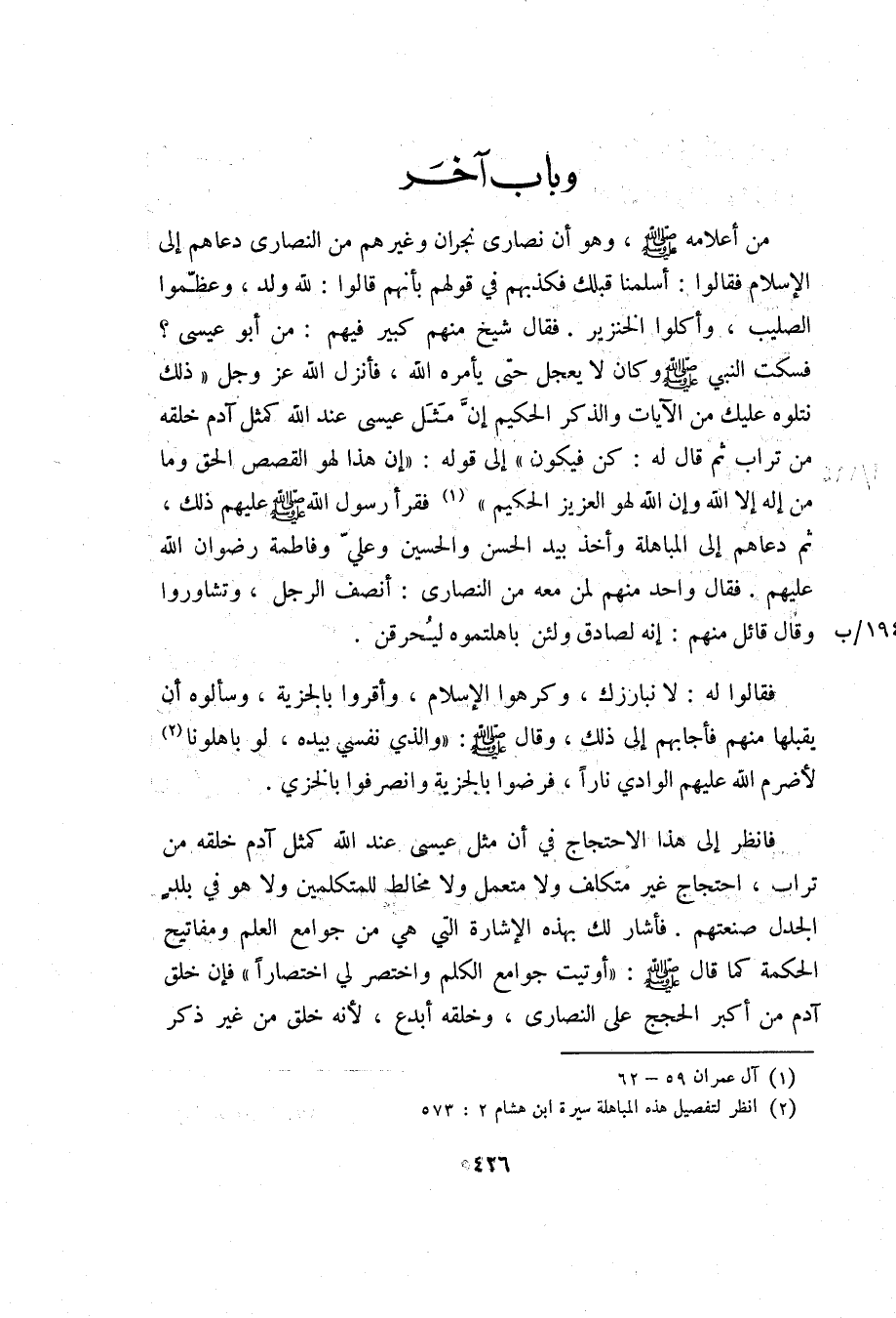 وباب آخر [دعوة الرسول لنصارى نجران للمباهلة وخضوعهم له]