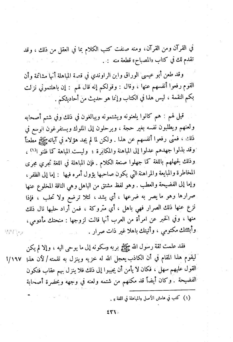 (1) كتب في هامش الأصل «المباهلة في اللغة» .