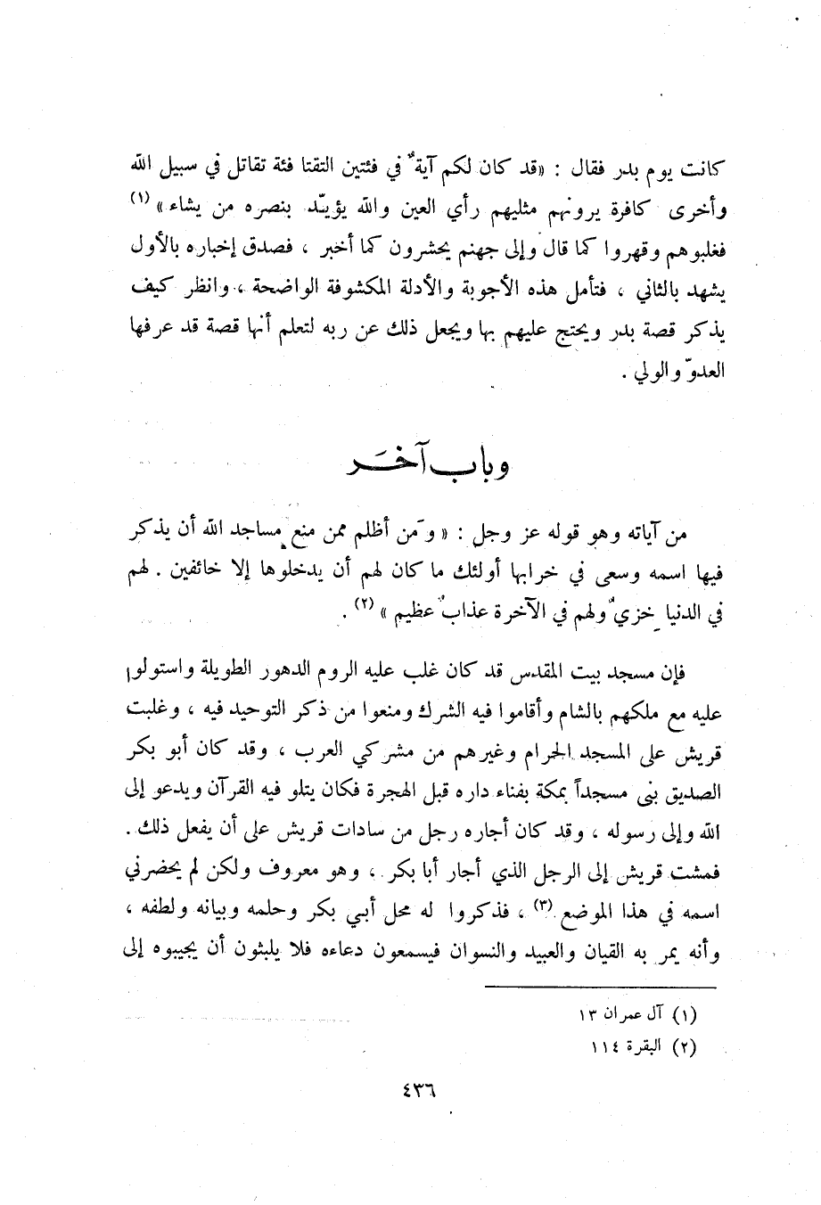 وباب آخر [حول الآية «وَمَنْ أَظْلَمُ مِمَّنْ مَنَعَ مَساجِدَ اللَّهِ أَنْ يُذْكَرَ فِيهَا اسْمُهُ» ]