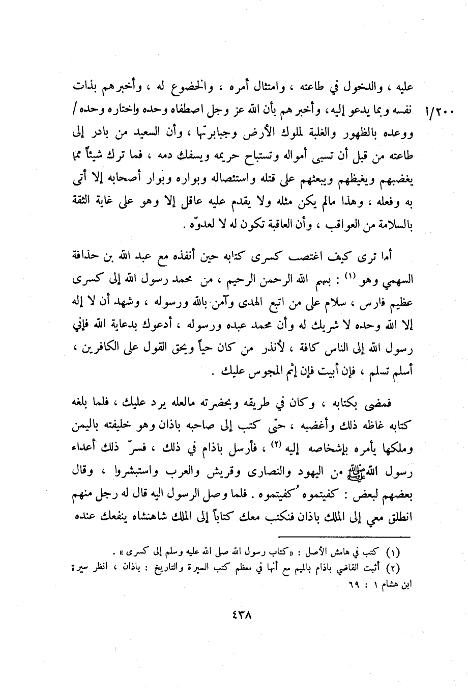 (1) كتب في هامش الأصل: «كتاب رسول الله صلى الله عليه وسلم إلى كسرى» .