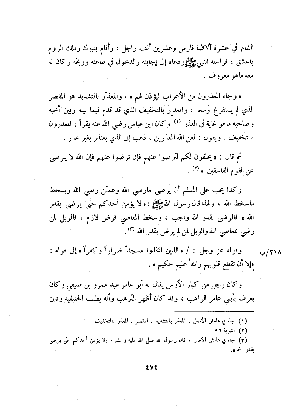 (1) جاء في هامش الأصل: المعذر بالتشديد: المقصر. المعذر بالتخفيف