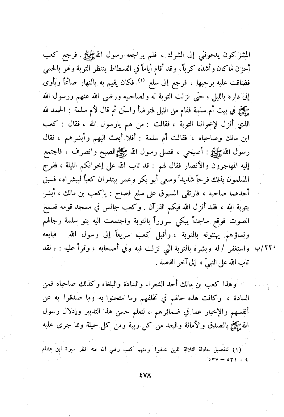 (1) لتفصيل حادثة الثلاثة الذين خلفوا ومنهم كعب رضي الله عنه انظر سيرة ابن هشام 4: 531- 537