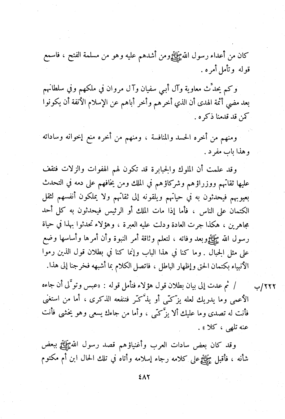 وقد علمت أن الملوك والجبابرة قد تكون لهم الهفوات والزلات فتقف عليها ثقاتهم ووزراؤهم وشركاؤهم في الملك ومن يخافهم على دمه في التحدث بعيوبهم فيحدثون به في حياتهم ويلقونه إلى ثقاتهم ولا يملكون أنفسهم لثقل الكتمان على الناس، فأما إذا مات الملك أو الرئيس فيحدثون به كل أحد مجاهرين، هكذا جرت العادة ودلت عليه العبرة، وهؤلاء تحدثوا بهذا في حياة رسول الله صلّى الله عليه وسلم وبعد وفاته، لتعلم وثاقة أمر النبوة وأن أمرها وأساسها وضع على مثل الجبال. وما كنا في هذا الباب وإنما كنا في بطلان قول الذين رموا الأنبياء بكتمان الحق وإظهار الباطل، فاتصل الكلام بما أشبهه فخرجنا إلى هذا.