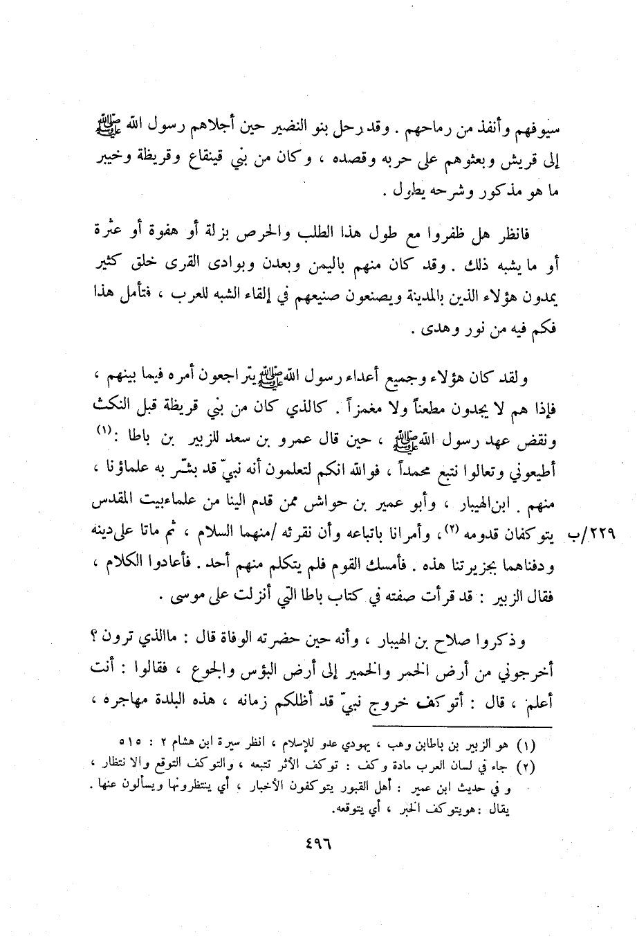 (1) هو الزبير بن باطا بن وهب، يهودي عدو للإسلام، انظر سيرة ابن هشام 2: 515