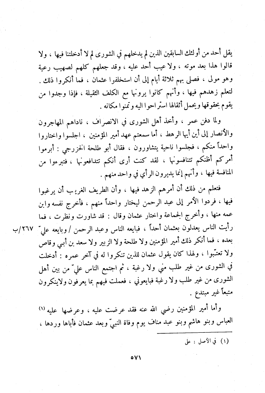 يقل أحد من أولئك السابقين الذين لم يدخلهم في الشورى لم لا أدخلتنا فيها، ولا قالوا هذا بعد موته، ولا عيب أحد عليه، وقد جعلهم كلهم لصهيب رعية وهو مولى، فصلى بهم ثلاثة أيام إلى أن استخلفوا عثمان، فما أنكروا ذلك.