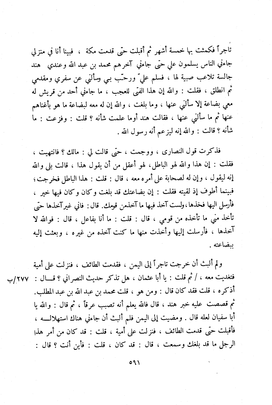 ولم ألبث أن خرجت تاجرا إلى اليمن، فقدمت الطائف، فنزلت على أمية فتغديت معه، / ثم قلت: يا أبا عثمان، هل تذكر حديث النصراني؟ قال: