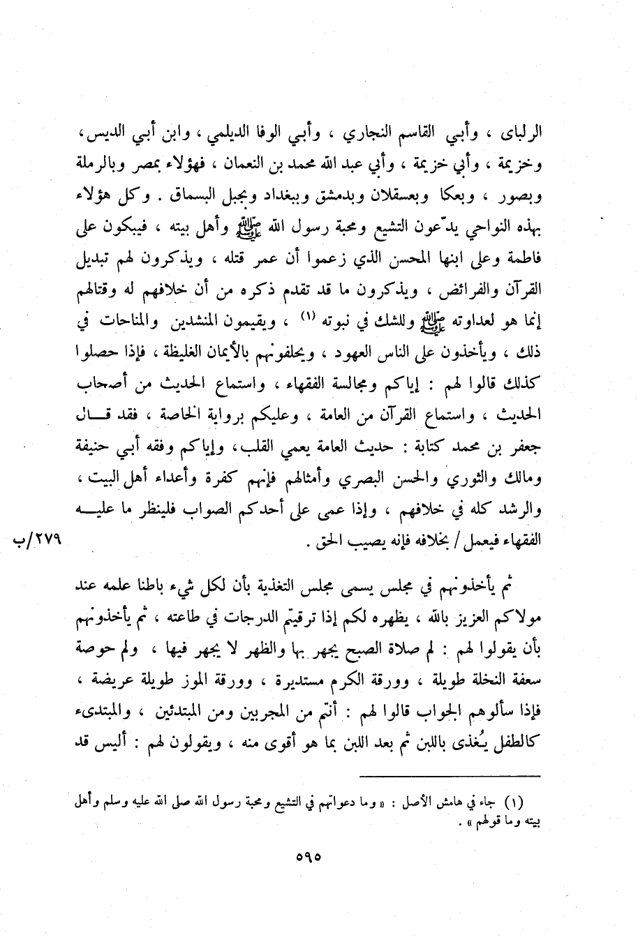 (1) جاء في هامش الأصل: «وما دعواتهم في التشيع ومحبة رسول الله صلّى الله عليه وسلم وأهل بيته وما قولهم» .