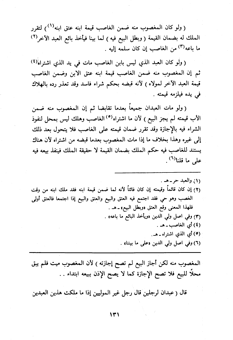 وَلَو مَاتَ العبدان جَمِيعًا بَعْدَمَا تقابضا ثمَّ إِن الْمَغْصُوب مِنْهُ ضمن الْأَب قِيمَته لم يجز البيع لِأَن مَا اشْتَرَاهُ الْغَاصِب وَهلك لَيْسَ بِمحل لنفوذ الشِّرَاء فِيهِ بِالْإِجَازَةِ وَقد تقرر ضَمَان قِيمَته على الْغَاصِب فَلَا يتَحَوَّل بعد ذَلِك إِلَى غَيره وَهَذَا بِخِلَاف مَا إِذا مَاتَ الْمَغْصُوب بَعْدَمَا قَبضه من اشْتَرَاهُ لِأَن هُنَاكَ يسْتَند للْغَالِب فِيهِ حكم الْملك بِضَمَان الْقيمَة لَا حَقِيقَة الْملك فَينفذ بَيْعه فِيهِ على مَا قُلْنَا