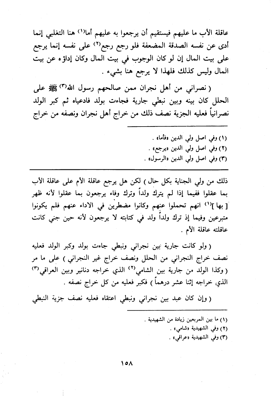 نَصْرَانِيّ من أهل نَجْرَان مِمَّن صَالحهمْ رَسُول الله صلى الله عَليّ وَسلم على الْحلَل كَانَ بَينه وَبَين نبطي جَارِيَة فَجَاءَت بِولد فادعياه ثمَّ كبر الْوَلَد نَصْرَانِيّا فَعَلَيهِ الْجِزْيَة نصف ذَلِك من خراج أهل نَجْرَان وَنصفه من خراج