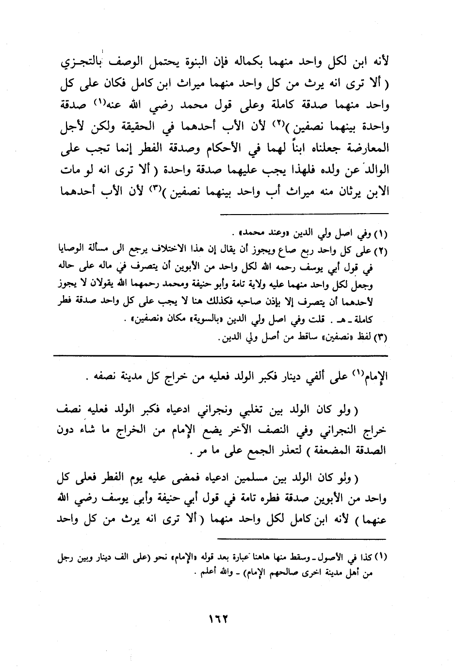 ـــــــــــــــــــــــــــــQالإِمَام على ألفي دِينَار فَكبر الْوَلَد فَعَلَيهِ من خراج كل مَدِينَة نصفه