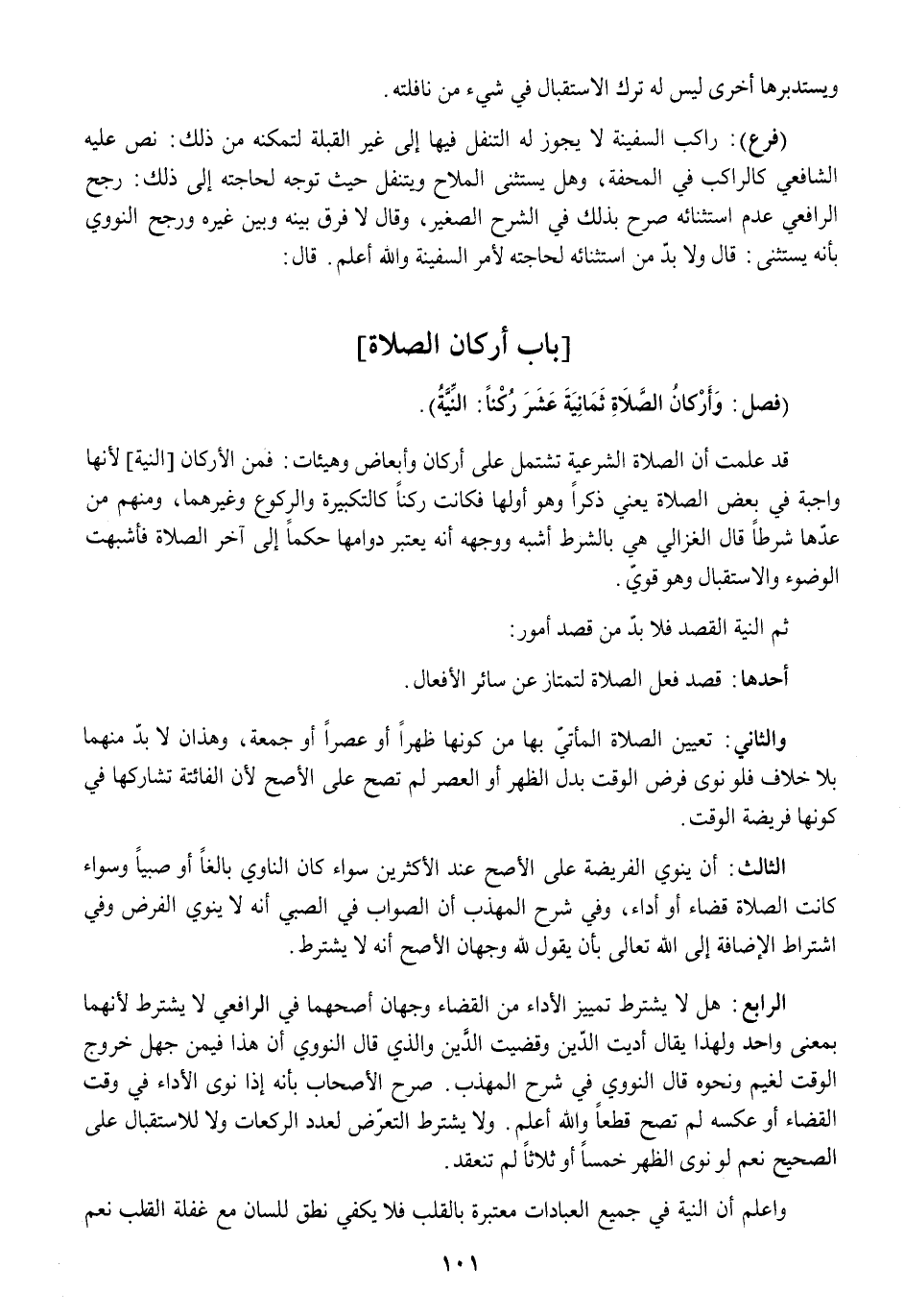(فصل وأركان الصَّلَاة ثَمَانِيَة عشر ركنا النِّيَّة)