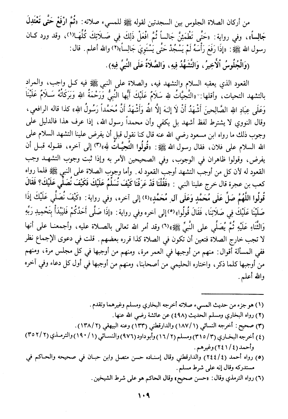 من أَرْكَان الصَّلَاة الْجُلُوس بَين السَّجْدَتَيْنِ لقَوْله صلى الله عَلَيْهِ وَسلم للمسيء صلَاته