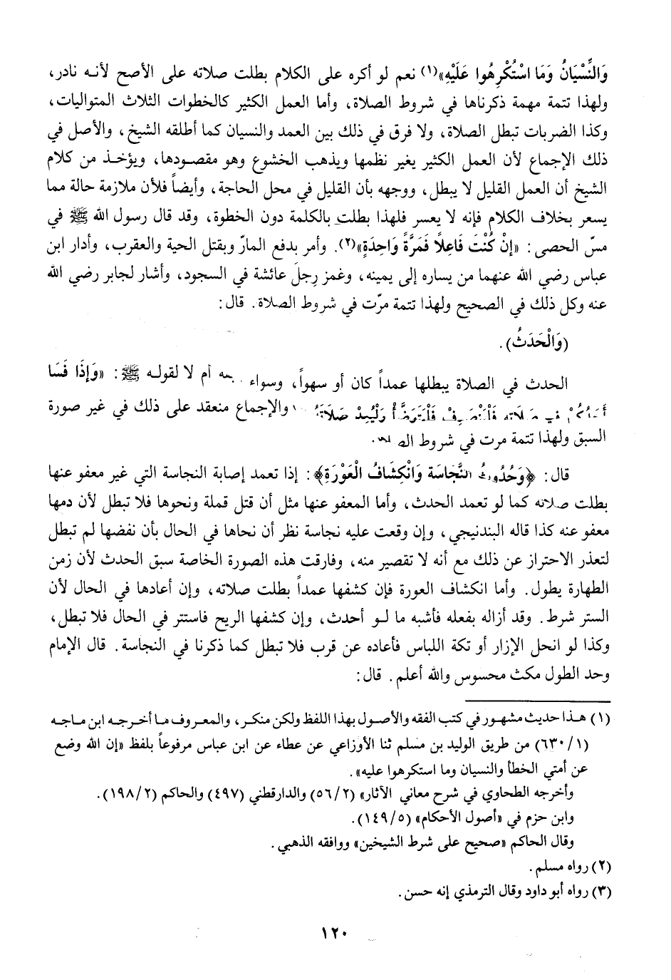 (وَالْحَدَث) الْحَدث فِي الصَّلَاة يُبْطِلهَا عمدا كَانَ أَو سَهوا وَسَوَاء سبقه أم لَا لقَوْله صلى الله عَلَيْهِ وَسلم