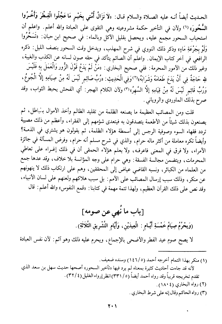 (وَيحرم صِيَام خَمْسَة أَيَّام الْعِيدَيْنِ وَأَيَّام التَّشْرِيق الثَّلَاثَة)