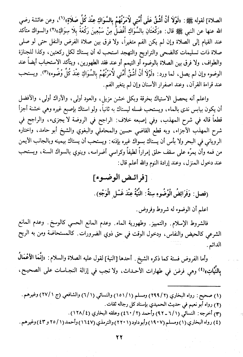 (لَوْلَا أَن أشق على أمتِي لأمرتهم بِالسِّوَاكِ عِنْد كل صَلَاة) وَعَن عَائِشَة رَضِي الله عَنْهَا عَن النَّبِي صلى الله عَلَيْهِ وَسلم قَالَ