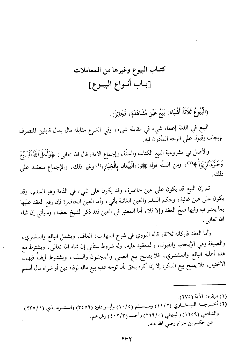 (الْبيُوع ثَلَاثَة اشياء بيع عين مُشَاهدَة فَجَائِز)