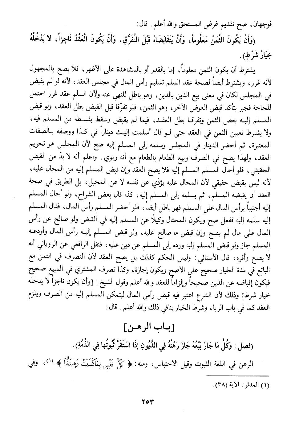 بَاب الرَّهْن فصل وكل مَا جَازَ بَيْعه جَازَ رَهنه فِي الدُّيُون إِذا اسْتَقر ثُبُوتهَا فِي الذِّمَّة