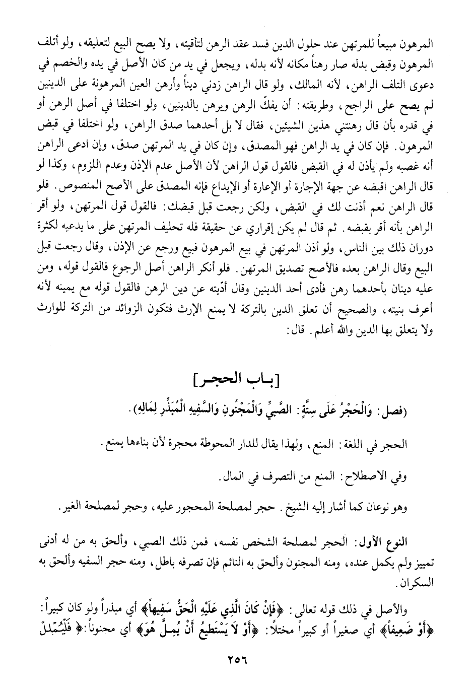 بَاب الْحجر فصل وَالْحجر على سِتَّة الصَّبِي وَالْمَجْنُون وَالسَّفِيه المبذر لمَاله