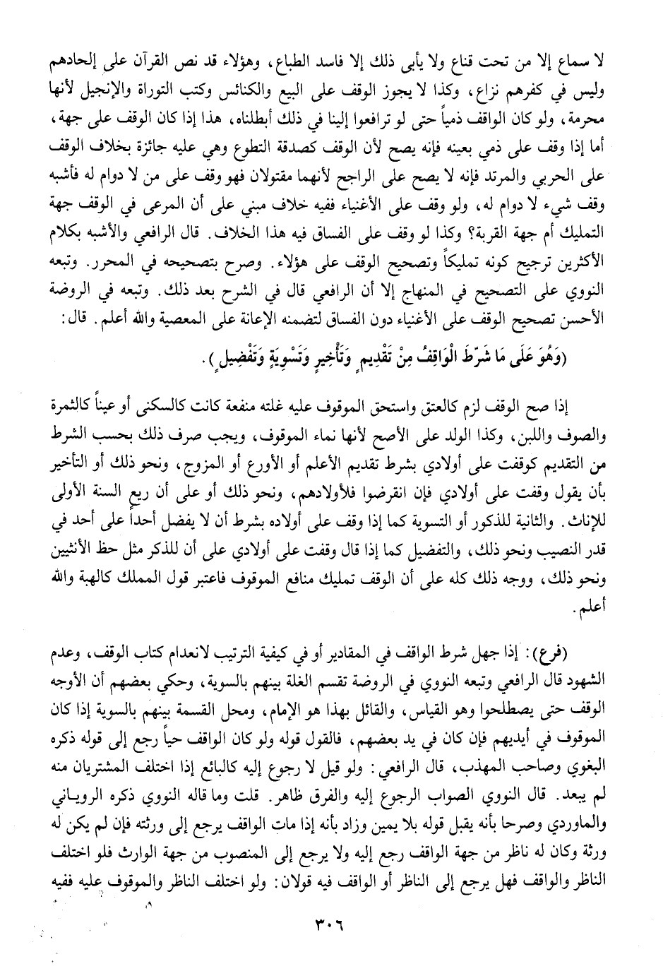 لَا سَماع إِلَّا من تَحت قناع وَلَا يَأْبَى ذَلِك إِلَّا فَاسد الطباع وَهَؤُلَاء قد نَص الْقُرْآن على إلحادهم وَلَيْسَ فِي كفرهم نزاع وَكَذَا لَا يجوز الْوَقْف على البيع وَالْكَنَائِس وَكتب التَّوْرَاة وَالْإِنْجِيل لِأَنَّهَا مُحرمَة وَلَو كَانَ الْوَقْف ذِمِّيا حَتَّى لَو ترافعوا إِلَيْنَا فِي ذَلِك أبطلناه هَذَا إِذا كَانَ الْوَقْف على جِهَة أما إِذا وقف على ذمِّي بِعَيْنِه فَإِنَّهُ يَصح لِأَن الْوَقْف كصدقة التَّطَوُّع وَهِي عَلَيْهِ جَائِزَة بِخِلَاف الْوَقْف على الْحَرْبِيّ وَالْمُرْتَدّ فَإِنَّهُ لَا يَصح على الرَّاجِح لِأَنَّهُمَا مقتولان فَهُوَ وقف على من لَا دوَام لَهُ فَأشبه وقف شَيْء لَا دوَام لَهُ وَلَو وقف على الْأَغْنِيَاء فَفِيهِ خلاف مَبْنِيّ على أَن المرعي فِي الْوَقْف جِهَة التَّمْلِيك أم جِهَة الْقرْبَة وَكَذَا لَو وقف على الْفُسَّاق فِيهِ هَذَا الْخلاف قَالَ الرَّافِعِيّ وَالْأَشْبَه بِكَلَام الْأَكْثَرين تَرْجِيح كَونه تَمْلِيكًا وَتَصْحِيح الْوَقْف على هَؤُلَاءِ وَصرح بِتَصْحِيحِهِ فِي الْمُحَرر وَتَبعهُ النَّوَوِيّ على التَّصْحِيح فِي الْمِنْهَاج إِلَّا أَن الرَّافِعِيّ قَالَ فِي الشَّرْح بعد ذَلِك وَتَبعهُ فِي الرَّوْضَة الْأَحْسَن تَصْحِيح الْوَقْف على الْأَغْنِيَاء دون الْفُسَّاق لتَضَمّنه الْإِعَانَة على الْمعْصِيَة وَالله أعلم قَالَ