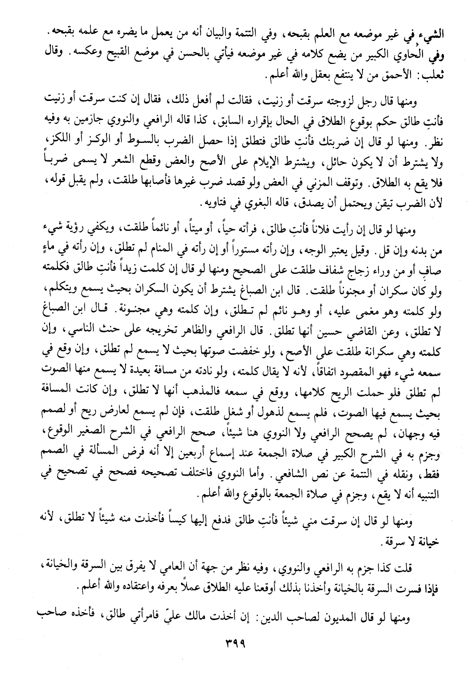 قلت كَذَا جزم بِهِ الرَّافِعِيّ وَالنَّوَوِيّ وَفِيه نظر من جِهَة أَن الْعَاميّ لَا يفرق بَين السّرقَة والخيانة فَإِذا فسرت السّرقَة بالخيانة وأخذنا بذلك أوقعنا عَلَيْهِ الطَّلَاق عملا بعرفه واعتقاده وَالله أعلم