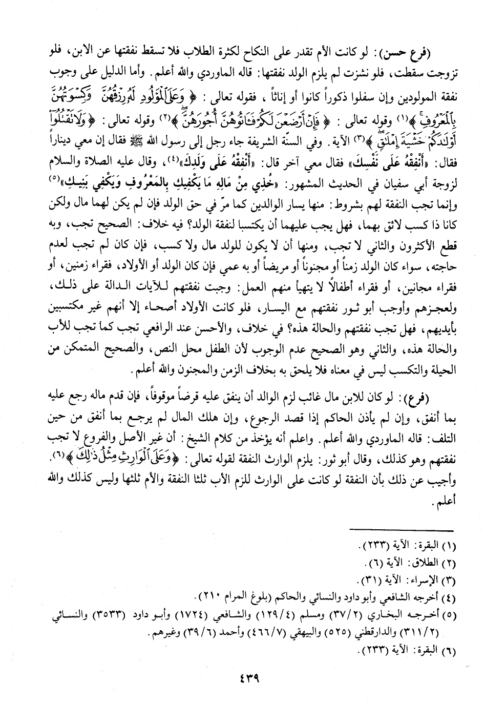 (فرع حسن) لَو كَانَت الْأُم تقدر على النِّكَاح لِكَثْرَة الطلاب فَلَا تسْقط نَفَقَتهَا عَن الابْن فَلَو تزوجت سَقَطت فَلَو نشزت لم يلْزم الْوَلَد نَفَقَتهَا قَالَه الْمَاوَرْدِيّ وَالله أعلم وَأما الدَّلِيل على وجوب نَفَقَة المولودين وَإِن سفلوا ذُكُورا كَانُوا أَو إِنَاثًا فَقَوله تَعَالَى {وَعَلَى الْمَوْلُودِ لَهُ رِزْقُهُنَّ وَكِسْوَتُهُنَّ بِالْمَعْرُوفِ} وَقَوله تَعَالَى {فَإِنْ أَرْضَعْنَ لَكُمْ فَآتُوهُنَّ أُجُورَهُنَّ} وَقَوله تَعَالَى {وَلا تَقْتُلُوا أَوْلادَكُمْ خَشْيَةَ إِمْلاقٍ} الْآيَة وَفِي السّنة الشَّرِيفَة جَاءَ رجل إِلَى رَسُول الله صلى الله عَلَيْهِ وَسلم فَقَالَ إِن معي دِينَار فَقَالَ أنفقهُ على نَفسك فَقَالَ معي آخر قَالَ أنفقهُ على ولدك وَقَالَ عَلَيْهِ الصَّلَاة وَالسَّلَام لزوجة أبي سُفْيَان فِي الحَدِيث الْمَشْهُور خذي من مَاله مَا يَكْفِيك بِالْمَعْرُوفِ وَيَكْفِي بنيك وَإِنَّمَا تجب النَّفَقَة لَهُم بِشُرُوط مِنْهَا يسَار الْوَالِدين كَمَا مر فِي حق الْوَلَد فَإِن لم يكن لَهما مَال وَلَكِن كَانَا ذَا كسب لَائِق بهما فَهَل يجب عَلَيْهِمَا أَن يكتسبا لنفقة الْوَلَد فِيهِ خلاف الصَّحِيح تجب وَبِه قطع الْأَكْثَرُونَ وَالثَّانِي لَا تجب وَمِنْهَا أَن لَا يكون للْوَلَد مَال وَلَا كسب فَإِن كَانَ لم تجب لعدم حَاجته سَوَاء كَانَ الْوَلَد زَمنا أَو مَجْنُونا أَو مَرِيضا أَو بِهِ عمى فَإِن كَانَ الْوَلَد أَو الْأَوْلَاد فُقَرَاء زمنين أَو فُقَرَاء مجانين أَو فُقَرَاء أطفالاً لَا يتهيأ مِنْهُم الْعَمَل وَجَبت نَفَقَتهم للآيات الدَّالَّة على ذَلِك ولعجزهم وَأوجب أَبُو ثَوْر نَفَقَتهم مَعَ الْيَسَار فَلَو كَانَت الْأَوْلَاد أصحاء إِلَّا أَنهم غير مكتسبين بِأَيْدِيهِم فَهَل تجب نَفَقَتهم وَالْحَالة هَذِه فِي خلاف وَالْأَحْسَن عِنْد الرَّافِعِيّ تجب كَمَا تجب للْأَب وَالْحَالة هَذِه وَالثَّانِي وَهُوَ الصَّحِيح عدم الْوُجُوب لِأَن الطِّفْل مَحل النَّص وَالصَّحِيح المتمكن من الْحِيلَة والتكسب لَيْسَ فِي مَعْنَاهُ فَلَا يلْحق بِهِ بِخِلَاف الزَّمن وَالْمَجْنُون وَالله أعلم
