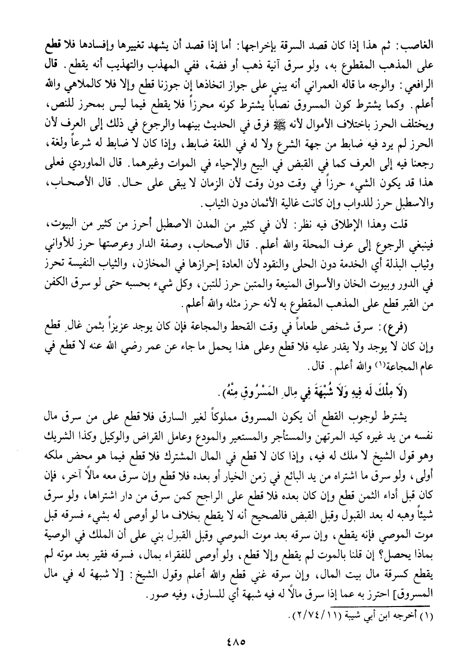 (لَا ملك لَهُ فِيهِ وَلَا شُبْهَة فِي مَال الْمَسْرُوق مِنْهُ)