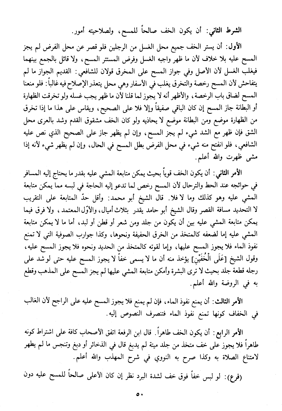 الشَّرْط الثَّانِي أَن يكون الْخُف صَالحا للمسح ولصلاحيته أُمُور