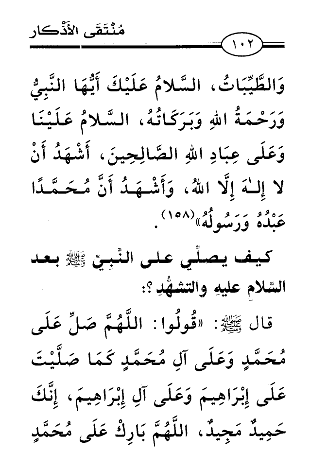 قال صلى الله عليه وسلم: «قُولُوا: اللَّهُمَّ صَلِّ عَلَى مُحَمَّدٍ وَعَلَى آلِ مُحَمَّدٍ كَمَا صَلَّيْتَ عَلَى إِبْرَاهِيمَ وَعَلَى آلِ إِبْرَاهِيمَ، إِنَّكَ حَمِيدٌ مَجِيدٌ، اللَّهُمَّ بَارِكْ عَلَى مُحَمَّدٍ
