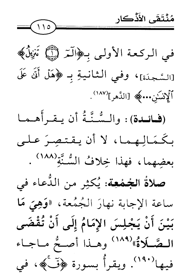 (¬187) أخرجه البخاريّ، كتاب: الجمعة، باب: مايقرأ في صلاة الفجر يوم الجمعة، برقم (891) ، عن أبي هريرة رضي الله عنه. ومسلم؛ كتاب: الجمعة، برقم (880) ، عنه أيضاً.