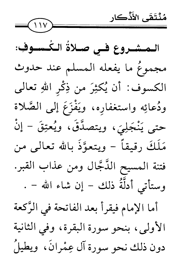مجموعُ ما يفعله المسلم عند حدوث الكسوف: أن يُكثِرَ من ذِكْرِ اللهِ تعالى ودُعائِه واستغفارِه، ويَفْزَعَ إلى الصَّلاة حتى يَنْجَلِيَ، ويتصدَّقَ، ويُعتِقَ - إنْ مَلَكَ رقيقاً - ويتعوَّذَ بالله تعالى من فتنة المسيح الدَّجَّال ومن عذاب القبر. وستأتي أدلَّةُ ذلك - إن شاء الله -.
