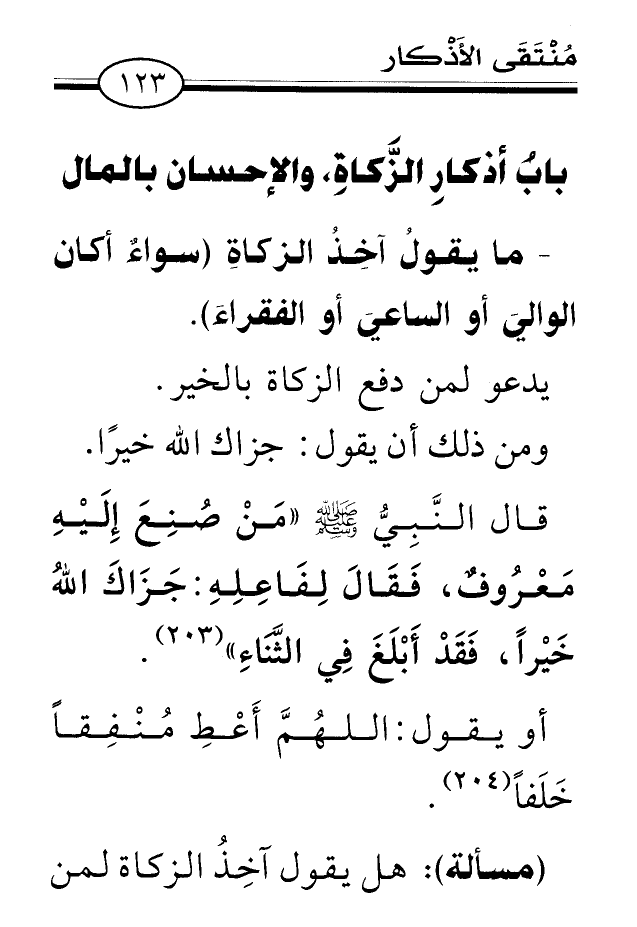 بابُ أذكارِ الزَّكاةِ، والإحسان بالمال