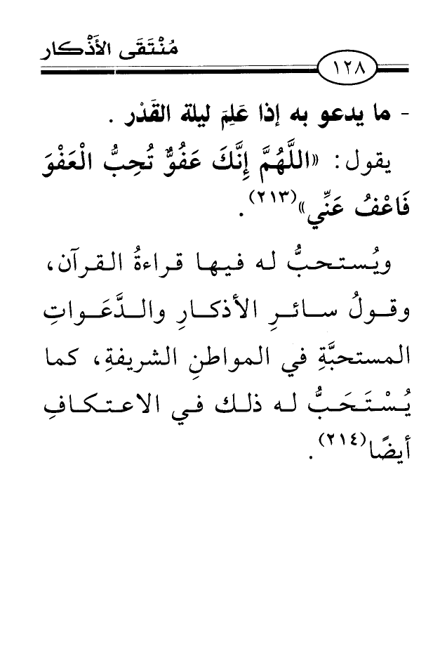 (¬214) كما أفاده النوويّ، كتاب: أذكار الصيام، باب: مايدعو إذا صادف ليلة القدر.