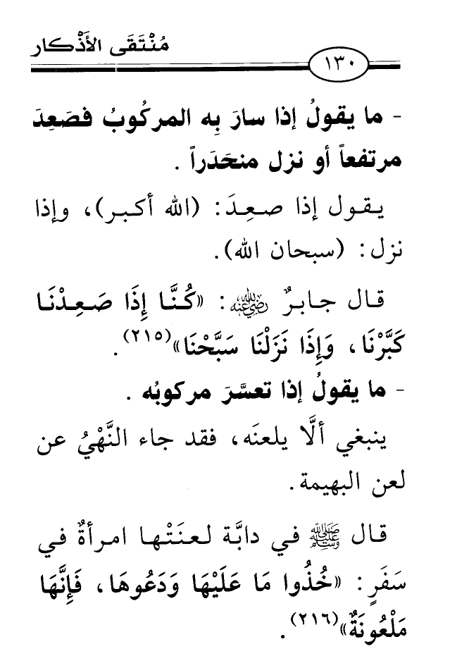 - ما يقولُ إذا سارَ بِه المركُوبُ فصَعِدَ مرتفعاً أو نزل منحَدَراً.