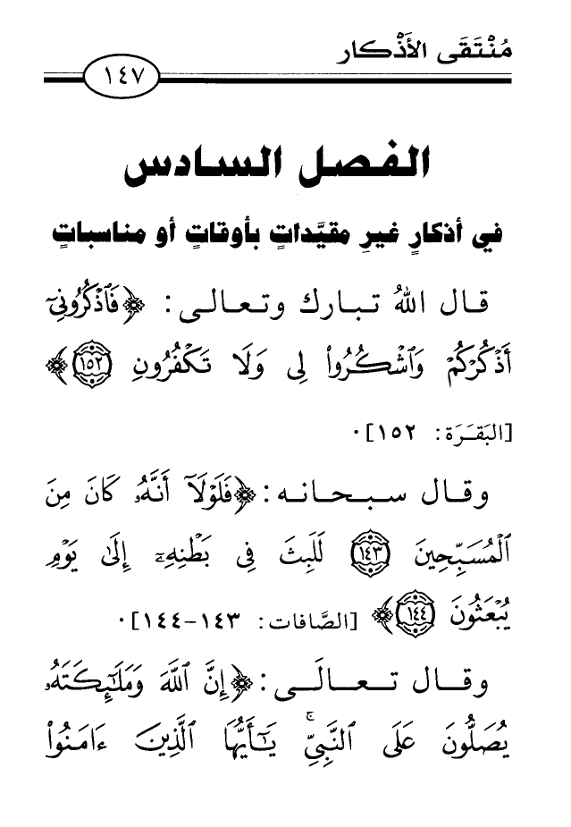 في أذكارٍ غيرِ مقيَّداتٍ بأوقاتٍ أو مناسباتٍ