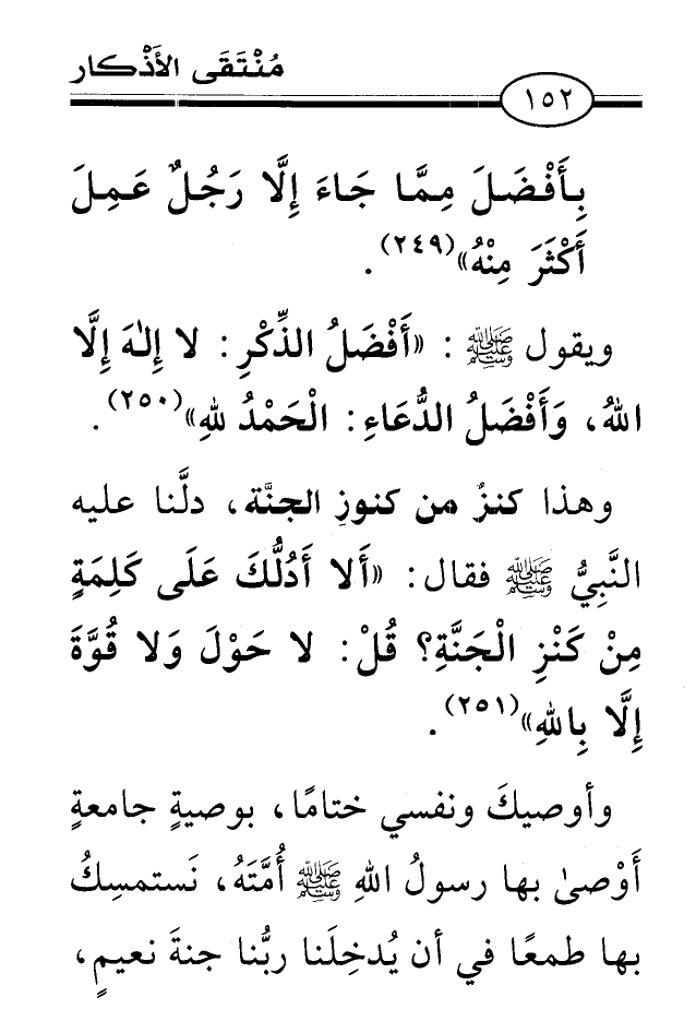 ويقول صلى الله عليه وسلم: «أَفْضَلُ الذِّكْرِ: لا إِلهَ إِلاَّ اللهُ، وَأَفْضَلُ الدُّعَاءِ: الْحَمْدُ للهِ» (¬250) .