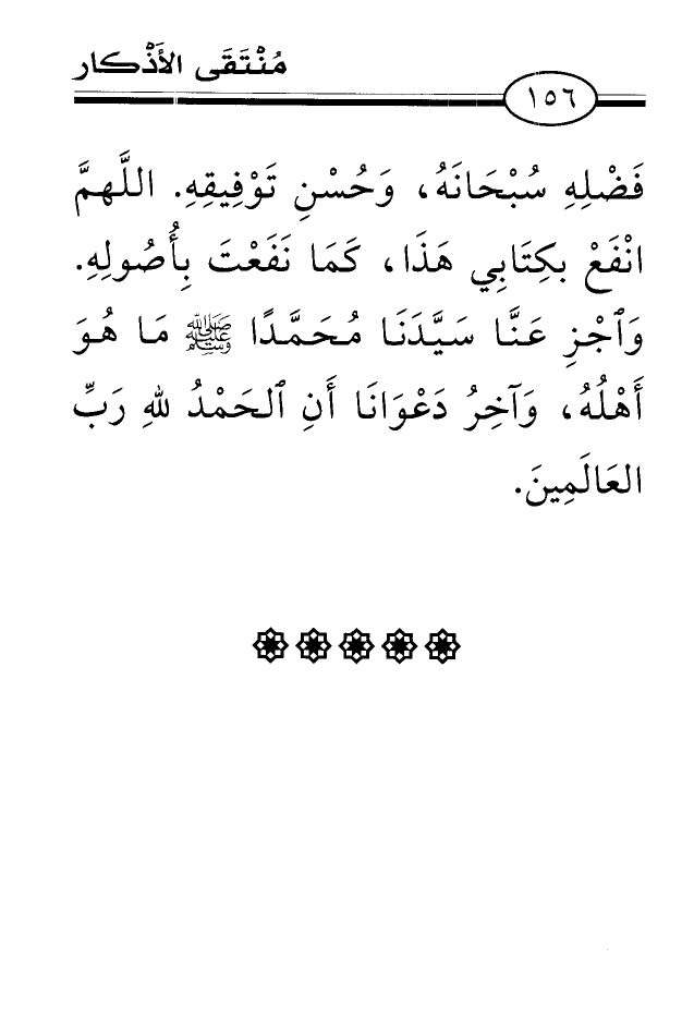 فَضْلِهِ سُبْحَانَهُ، وَحُسْنِ تَوْفِيقِهِ. اللَّهمَّ انْفَعْ بكِتَابِي هَذَا، كَمَا نَفَعْتَ بِأُصُولِهِ. وَاجْزِ عَنَّا سَيَّدَنَا مُحَمَّدًا صلى الله عليه وسلم مَا هُوَ أَهْلُهُ، وَآخِرُ دَعْوَانَا أَنِ الحَمْدُ للهِ رَبِّ العَالَمَِينَ.