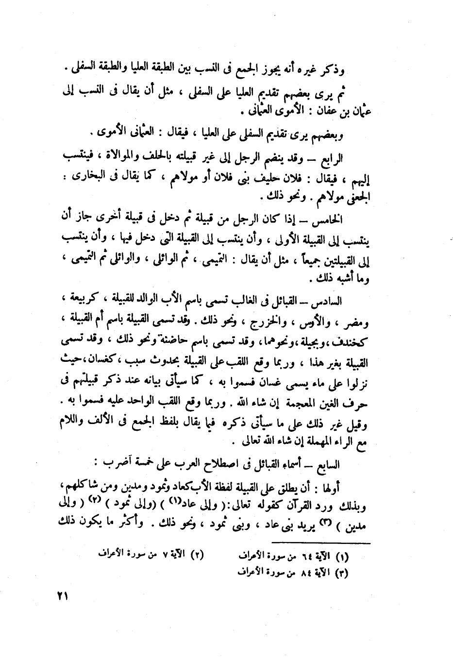 السابع: أسماء القبائل في اصطلاح العرب على خمسة أضرب: